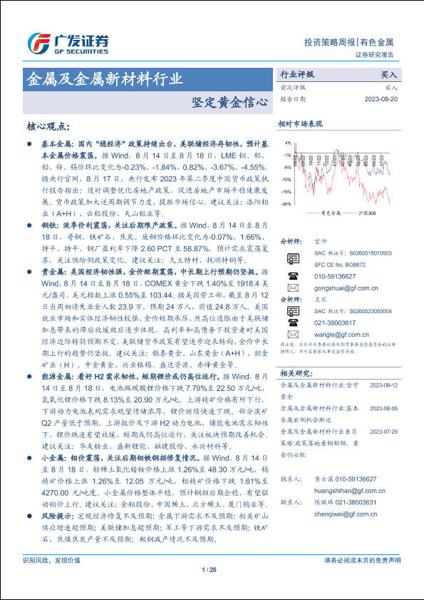 【广发证券】【20230820】金属及金属新材料行业:坚定黄金信心-25页