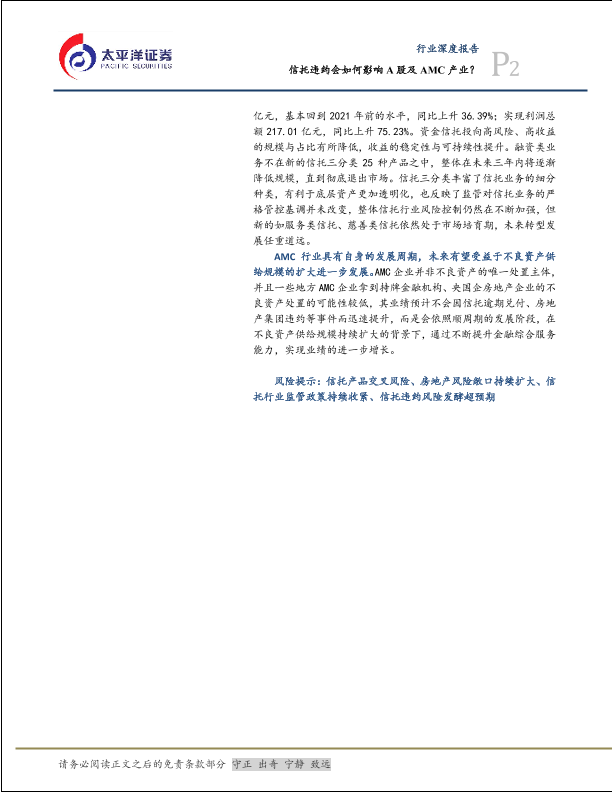 【太平洋证券】【20230821】非银金融行业:信托违约将如何影响A股及AMC产业?-17页