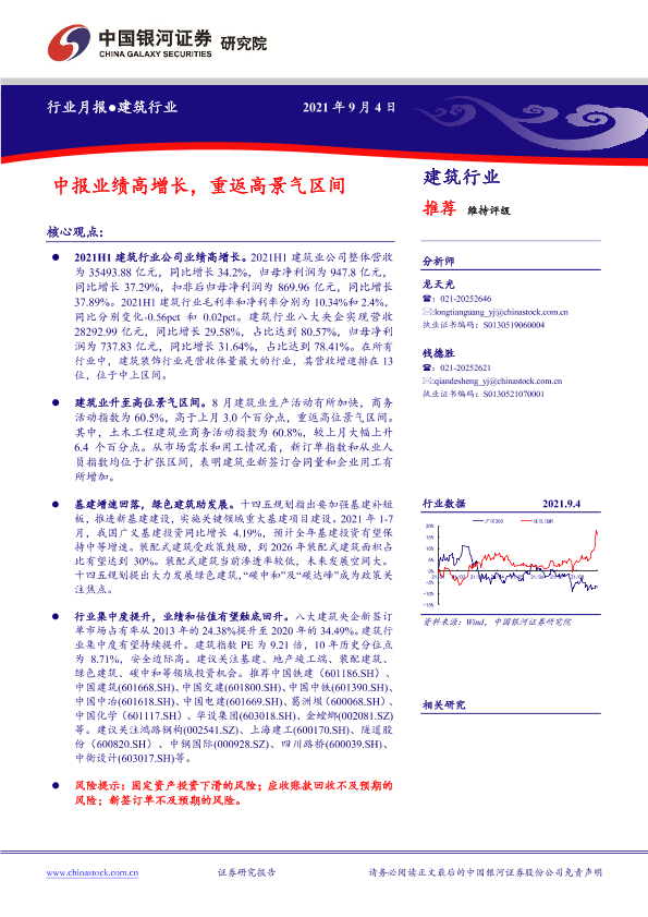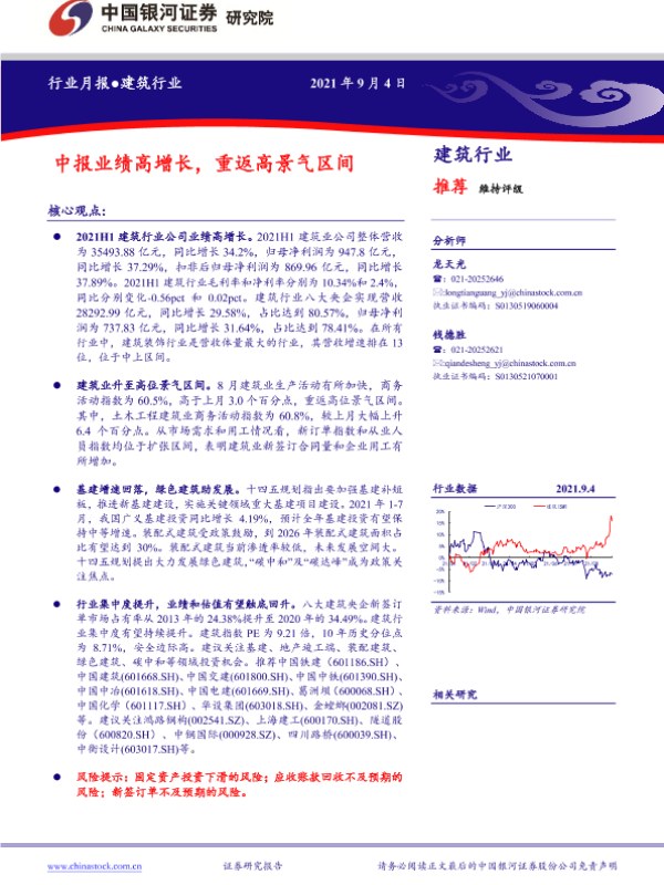 【银河证券】【20210904】建筑行业:中报业绩高增长,重返高景气区间-17页