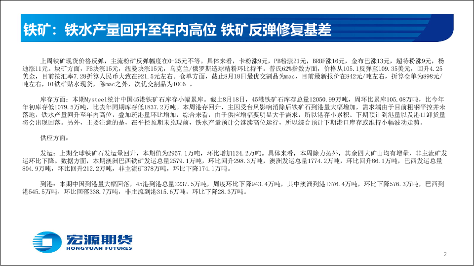 【宏源期货】【20230821】黑色金属_铁矿:铁水产量回升至年内高位,铁矿反弹修复基差-28页