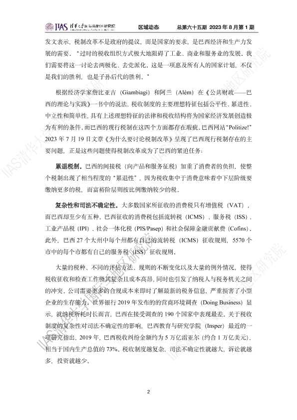 巴西经济 社会不平等问题 税制改革 税收政策 经济发展