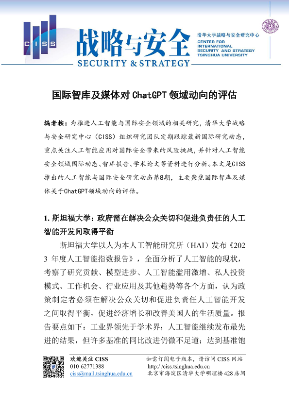 【清华大学战略与安全研究中心】【20230101】国际智库及媒体对ChatGPT领域动向的评估-11页