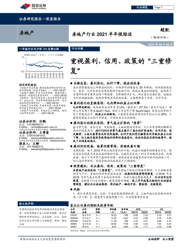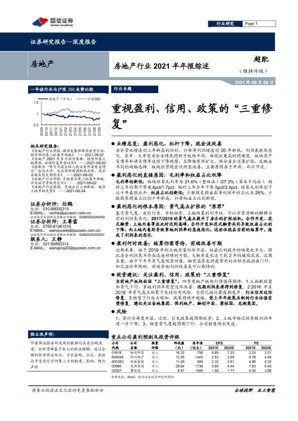 【国信证券】【20210908】房地产行业2021半年报综述:重视盈利、信用、政策的“三重修复”-21页