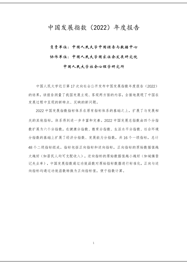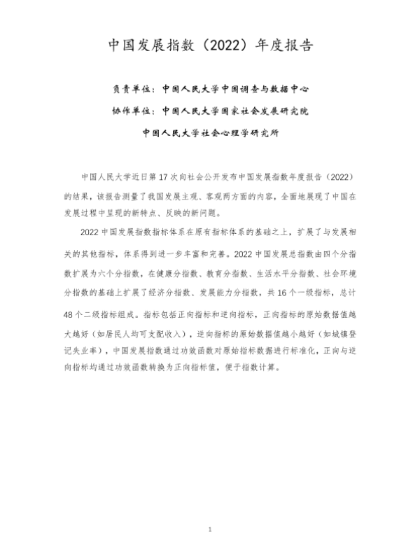 【中国人民大学中国调查与数据中心】【20220101】2022年中国发展指数报告-33页