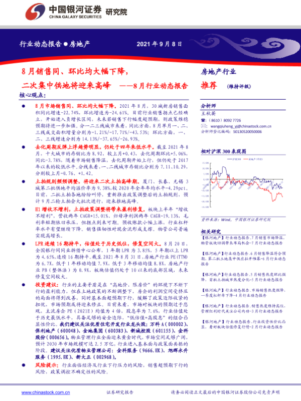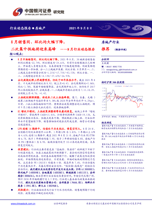 【银河证券】【20210908】房地产行业8月行业动态报告:8月销售同、环比均大幅下降,二次集中供地将迎来高峰-31页