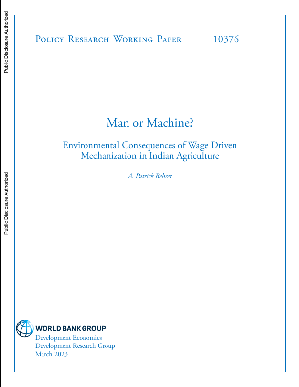 【世界银行】【20230301】人还是机器?:印度农业工资驱动的机械化对环境的影响-101页