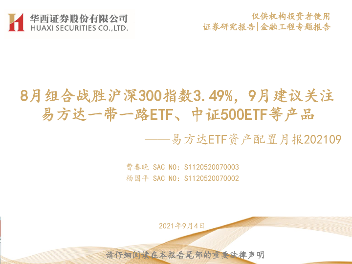 【华西证券】【20210904】配置月报:8月组合战胜沪深300指数3.49%,9月建议关注易方达一带一路ETF、中证500ETF等产品-23页