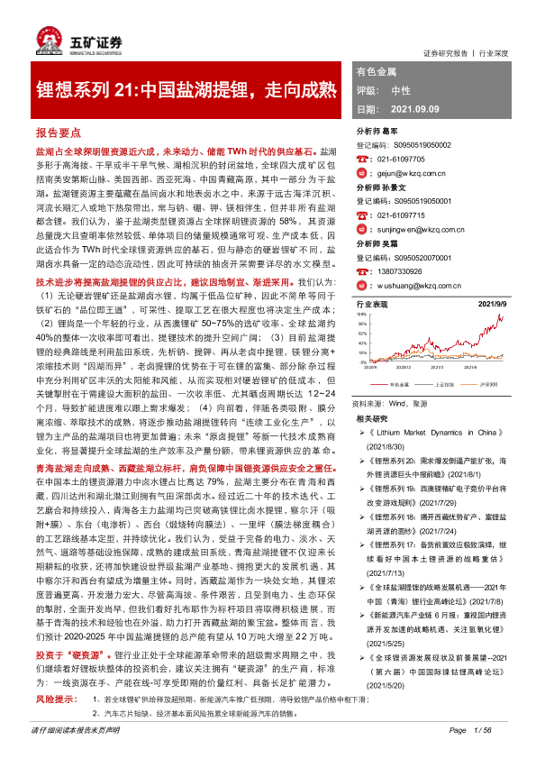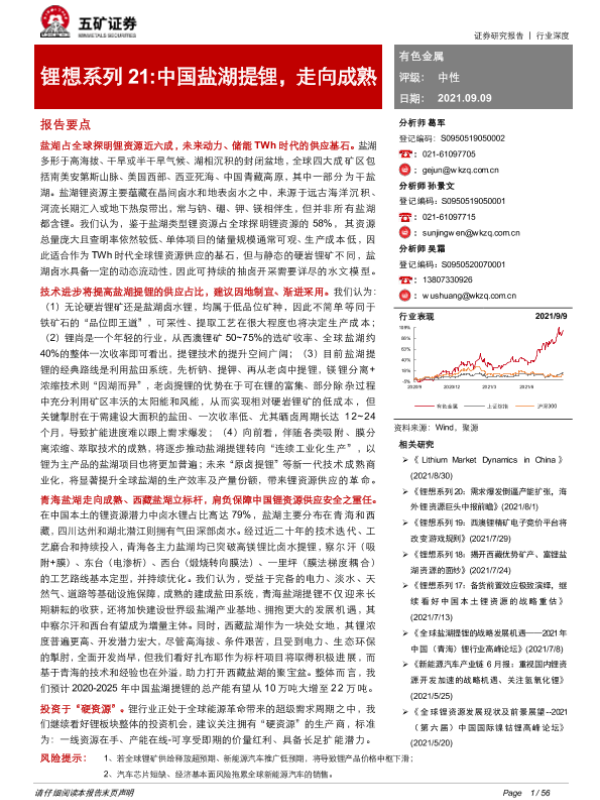 【五矿证券】【20210909】有色金属行业锂想系列21:中国盐湖提锂,走向成熟-56页