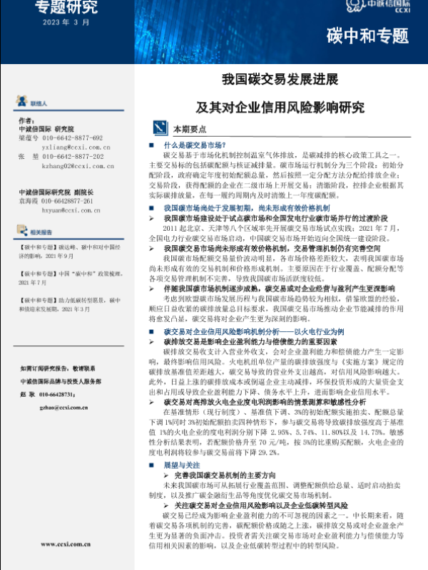 【中诚信国际】【20230331】我国碳交易发展进展及其对企业信用风险影响研究-17页