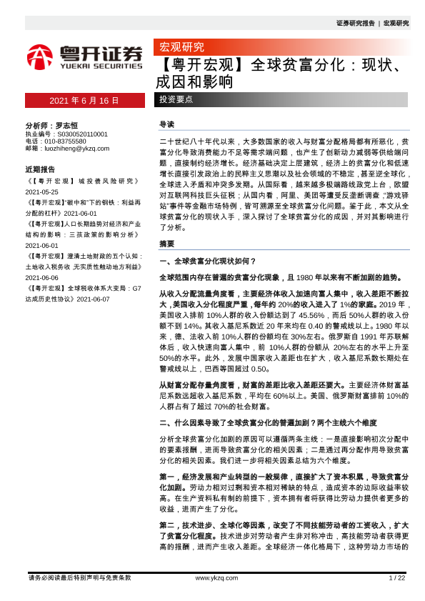 【粤开证券】【20210616】全球贫富分化:现状、成因和影响-22页