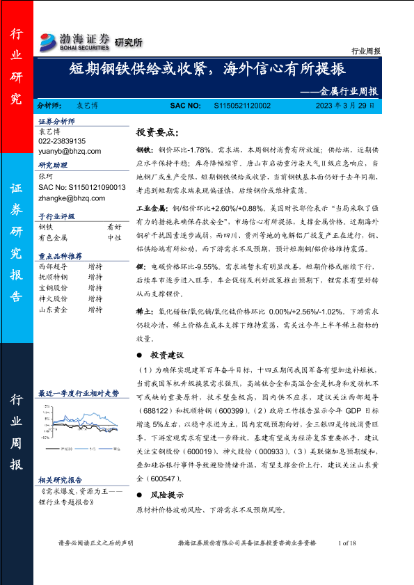 【渤海证券】【20230329】金属行业周报:短期钢铁供给或收紧,海外信心有所提振-18页