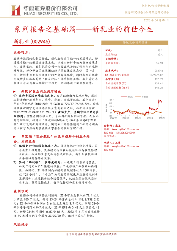 【华西证券】【20230404】(002946)系列报告之基础篇——新乳业的前世今生-30页
