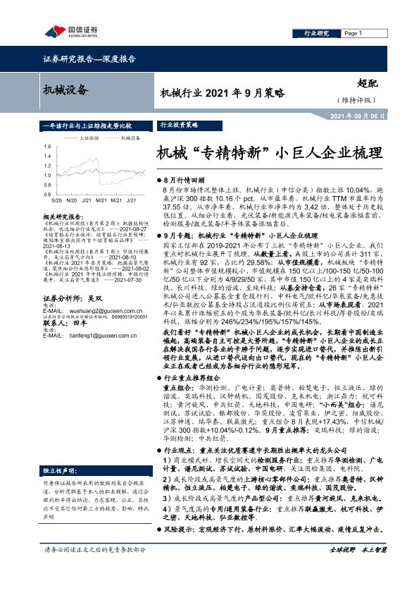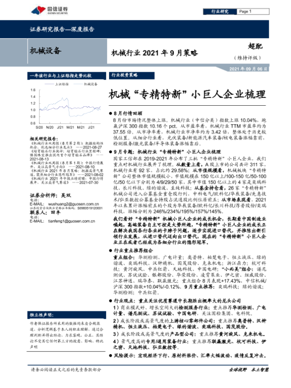 【国信证券】【20210906】机械行业2021年9月策略:机械“专精特新”小巨人企业梳理-26页