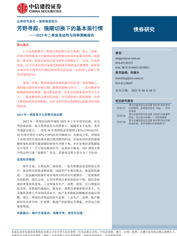 【中信建投证券】【20230404】2023年二季度流动性与利率策略报告:芳野寻踪,预期切换下的基本面行情-27页