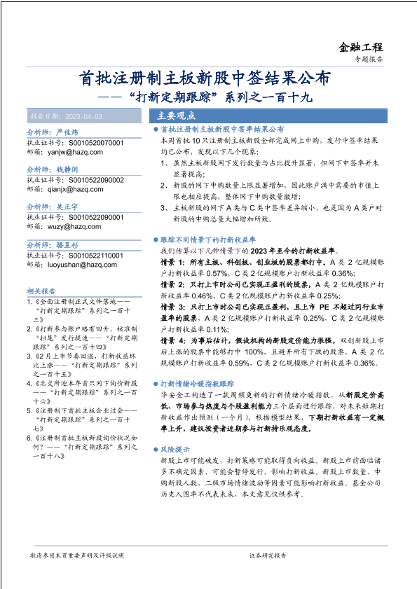【华安证券】【20230403】“打新定期跟踪”系列之一百十九:首批注册制主板新股中签结果公布-25页