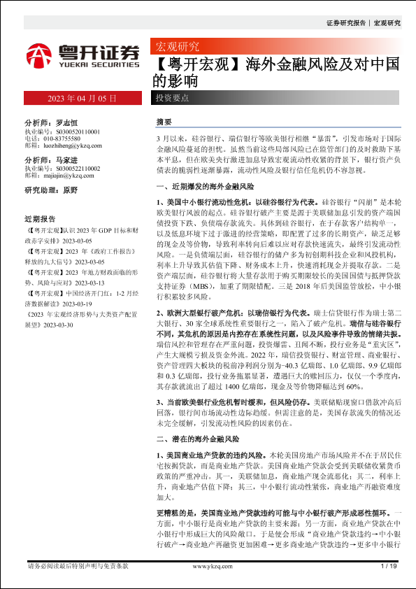 【粤开证券】【20230405】【粤开宏观】海外金融风险及对中国的影响-19页