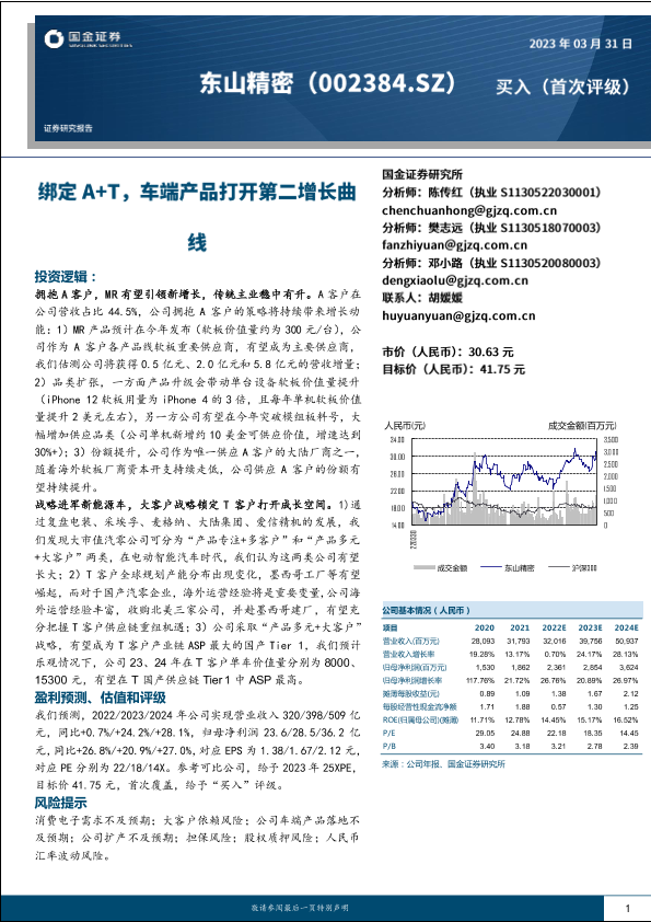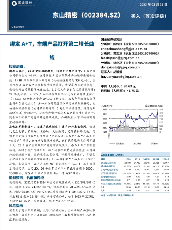 【国金证券】【20230331】东山精密002384.SZ绑定A+T,车端产品打开第二增长曲线-25页
