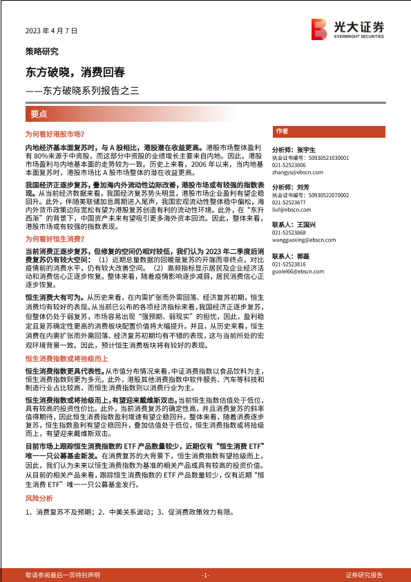 【光大证券】【20230407】东方破晓系列报告之三:东方破晓,消费回春-20页