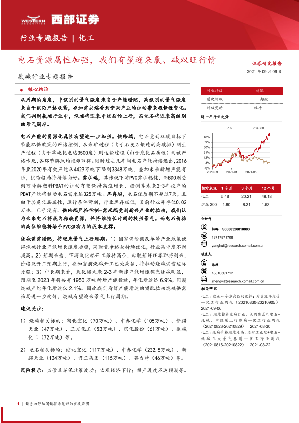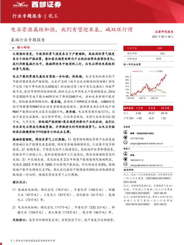 【西部证券】【20210906】氯碱行业专题报告:电石资源属性加强,我们有望迎来氯、碱双旺行情-24页