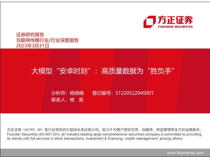 【方正证券】【20230331】互联网传媒行业大模型“安卓时刻”:高质量数据为“胜负手”-40页