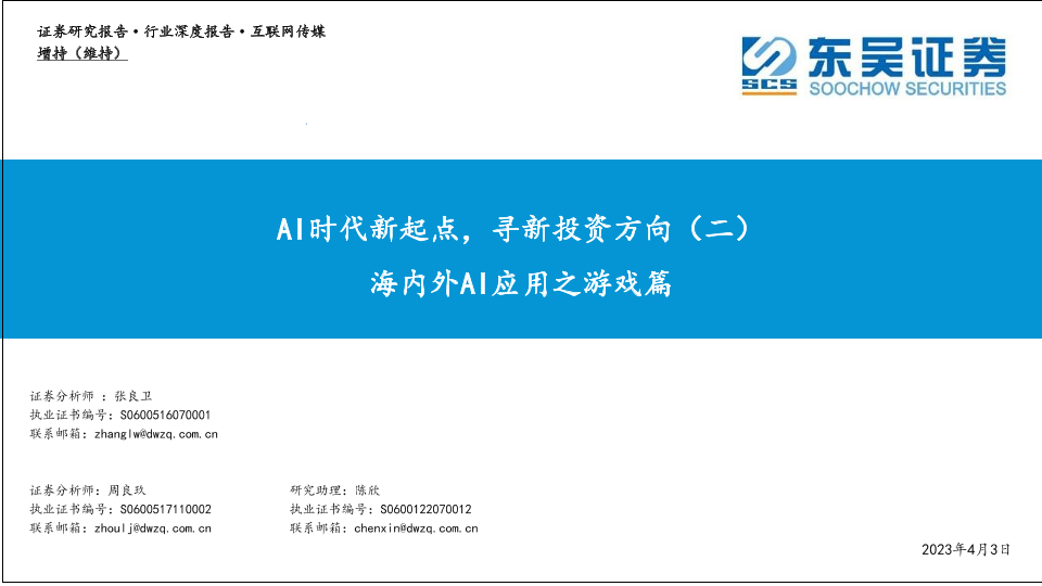 【东吴证券】【20230403】互联网传媒行业海内外AI应用之游戏篇:AI时代新起点,寻新投资方向(二)-33页