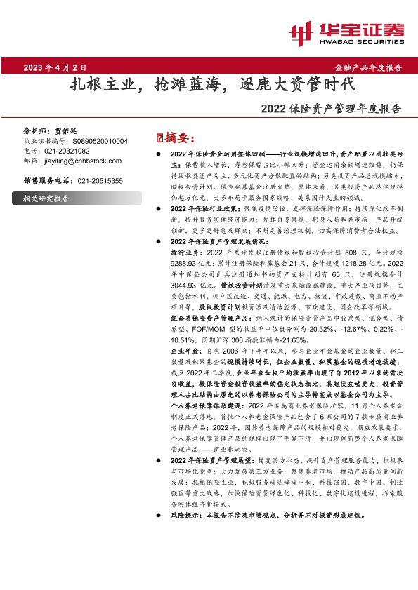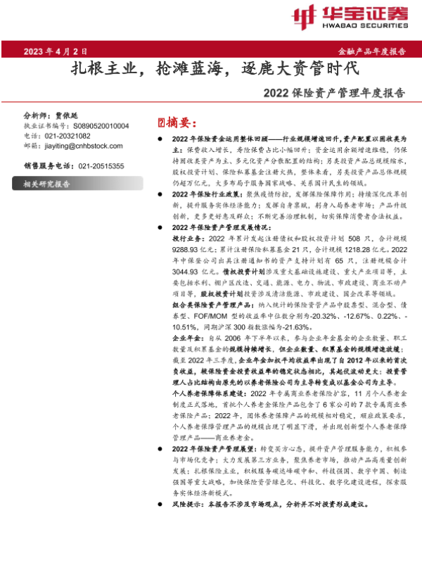 【华宝证券】【20230402】保险行业2022保险资产管理年度报告:扎根主业,抢滩蓝海,逐鹿大资管时代-40页
