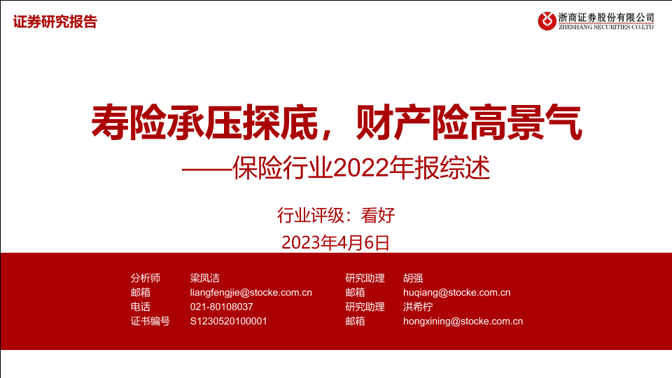 【浙商证券】【20230405】保险行业2022年报综述:寿险承压探底,财产险高景气-24页