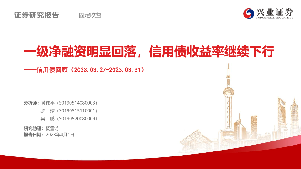 【兴业证券】【20230401】信用债回顾:一级净融资明显回落,信用债收益率继续下行-36页