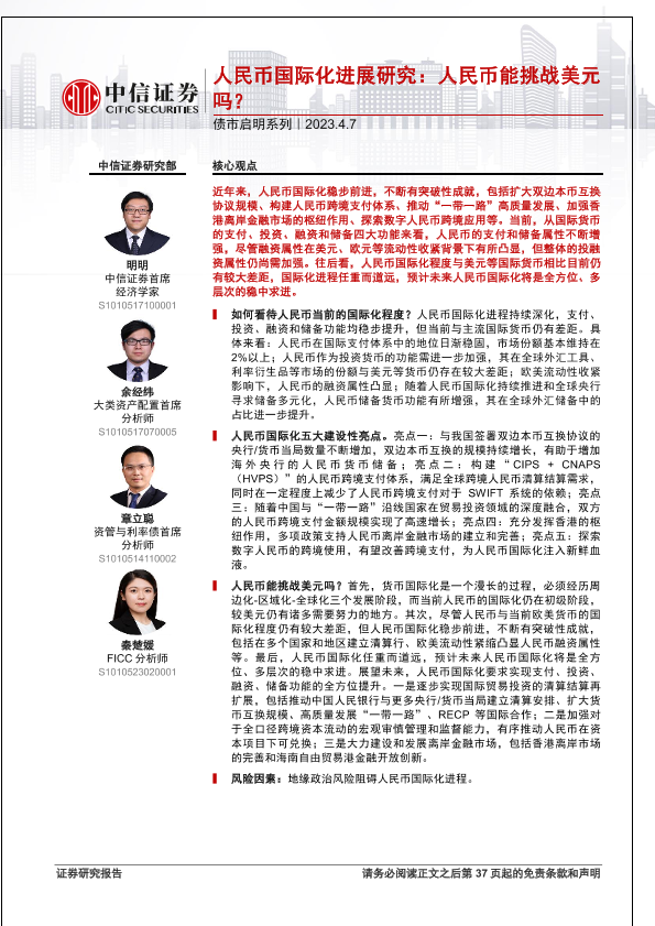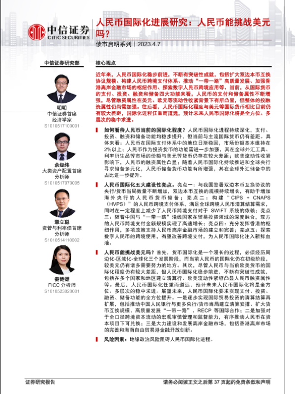 【中信证券】【20230407】债市启明系列:人民币国际化进展研究,人民币能挑战美元吗?-40页