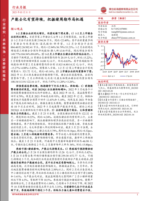 【东亚前海证券】【20230331】农林牧渔行业月报:产能去化有望持续,把握猪周期布局机遇-24页