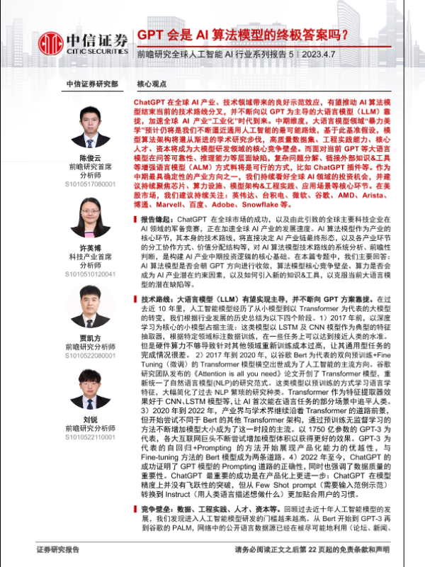 【中信证券】【20230407】前瞻研究全球人工智能AI行业系列报告5:GPT会是AI算法模型的终极答案吗?-23页