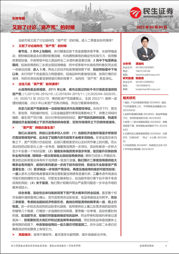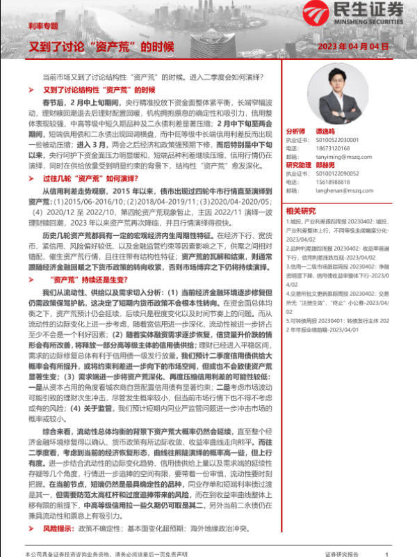 【民生证券】【20230404】利率专题:又到了讨论“资产荒”的时候-29页