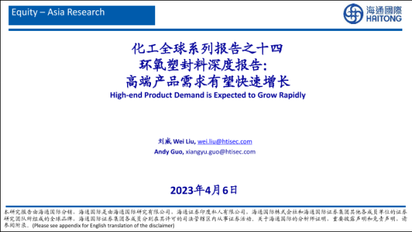 【海通国际】【20230406】化工行业全球系列报告之十四:环氧树脂塑封料深度报告,高端产品需求有望快速增长-39页