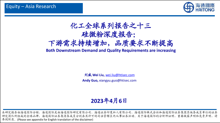 【海通国际】【20230406】化工行业全球系列报告之十三:硅微粉深度报告,下游需求持续增加,品质要求不断提高-58页