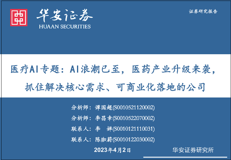 【华安证券】【20230402】医疗AI专题:AI浪潮已至,医药产业升级来袭,抓住解决核心需求、可商业化落地的公司-68页
