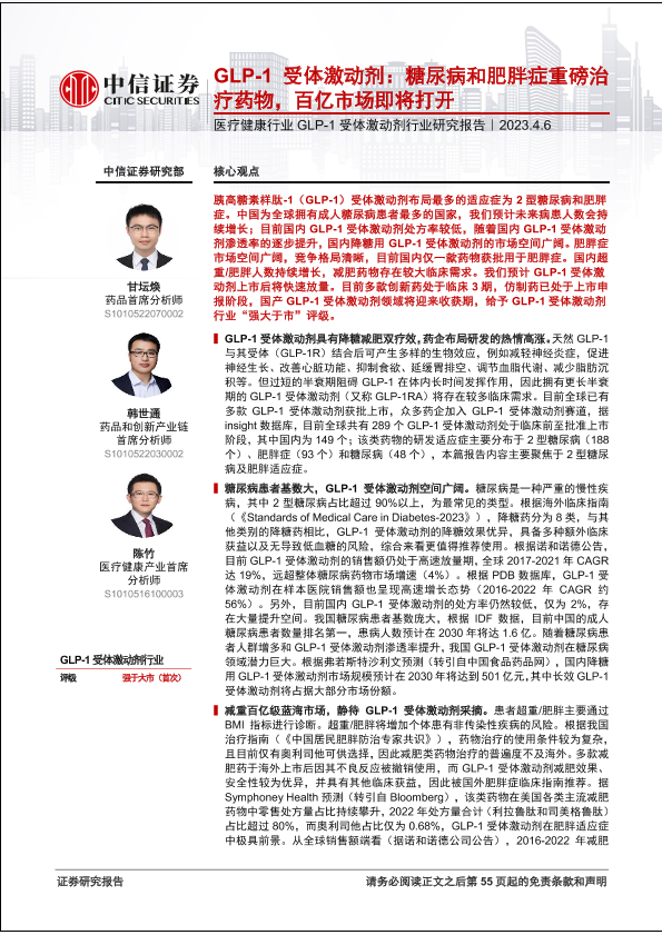 【中信证券】【20230406】医疗健康行业GLP-1受体激动剂行业研究报告:GLP-1受体激动剂,糖尿病和肥胖症重磅治疗药物,百亿市场即将打开-56页