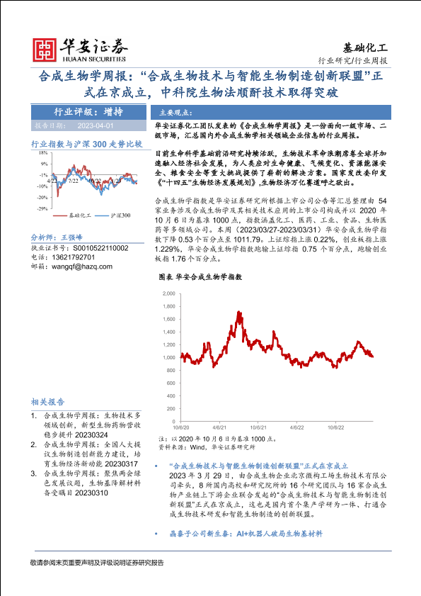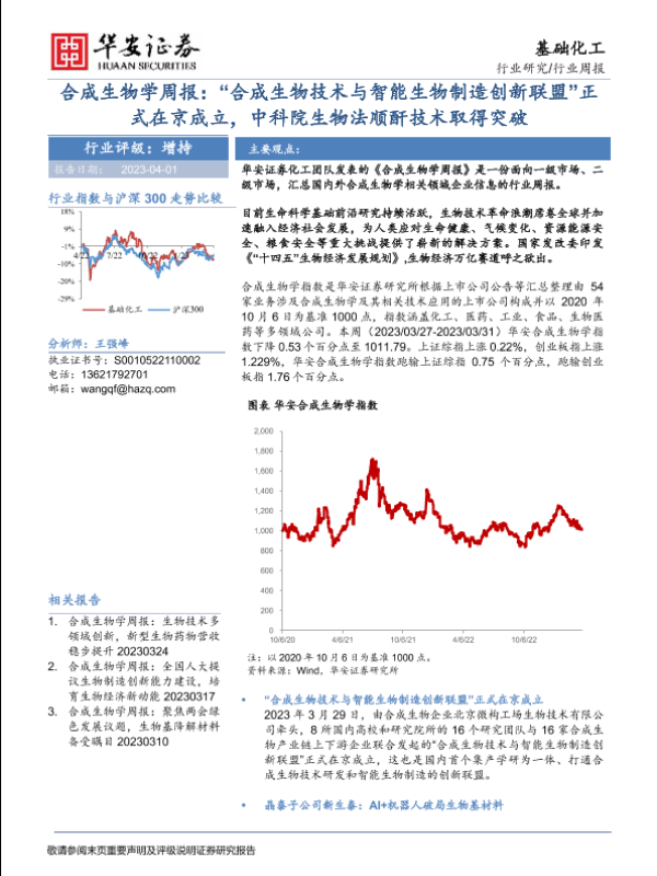 【华安证券】【20230401】合成生物学周报:“合成生物技术与智能生物制造创新联盟”正式在京成立,中科院生物法顺酐技术取得突破-16页