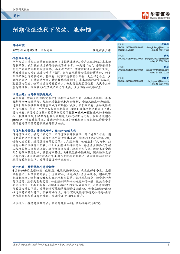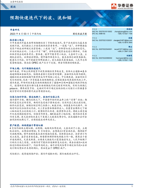 【华泰证券】【20230403】固定收益月报:预期快速迭代下的波、流和锚-26页