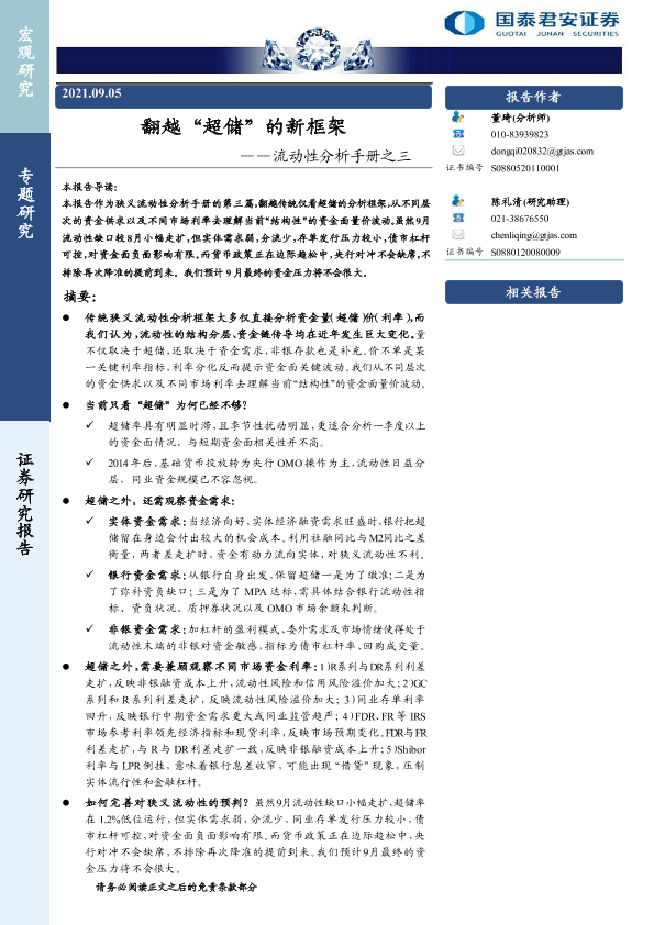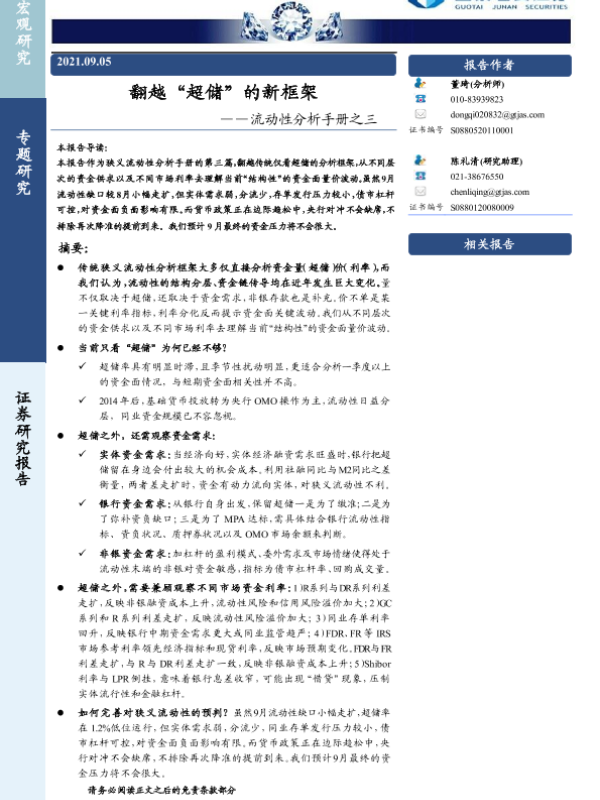 【国泰君安证券】【20210905】翻越“超储”的新框架——流动性分析手册之三-25页