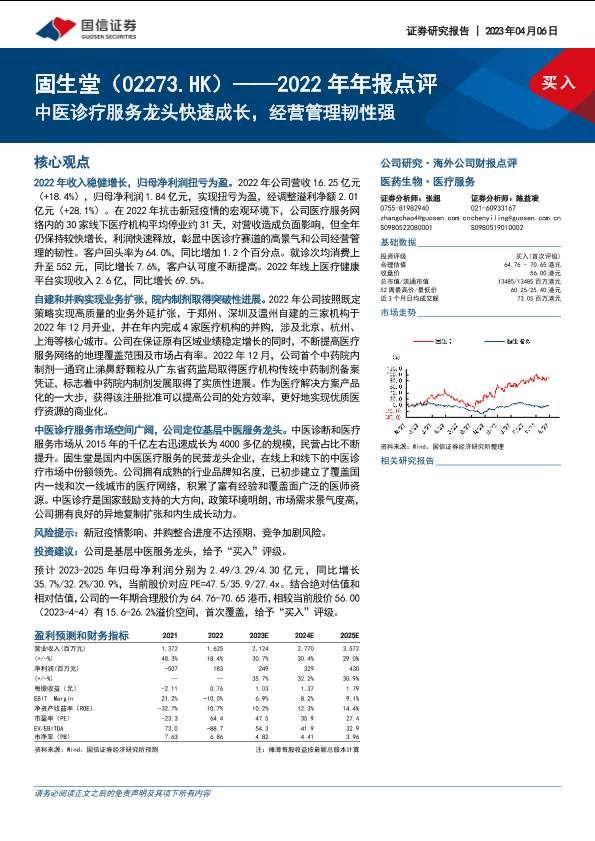 【国信证券】【20230406】固生堂(02273)2022年年报点评:中医诊疗服务龙头快速成长,经营管理韧性强-15页
