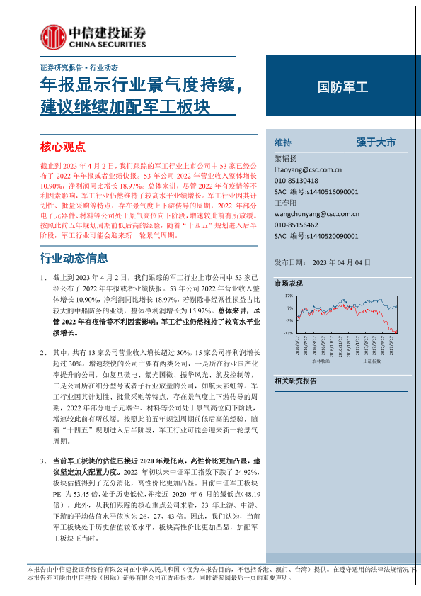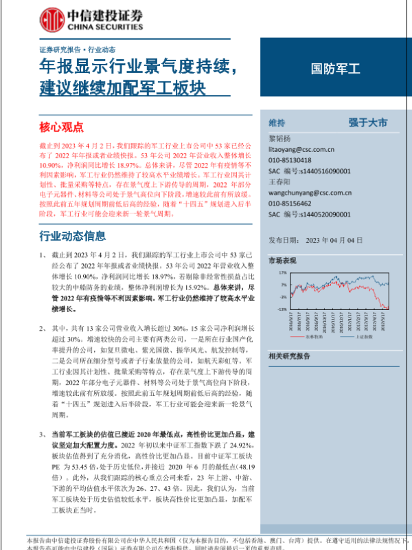 【中信建投证券】【20230404】国防军工行业:年报显示行业景气度持续,建议继续加配军工板块-27页