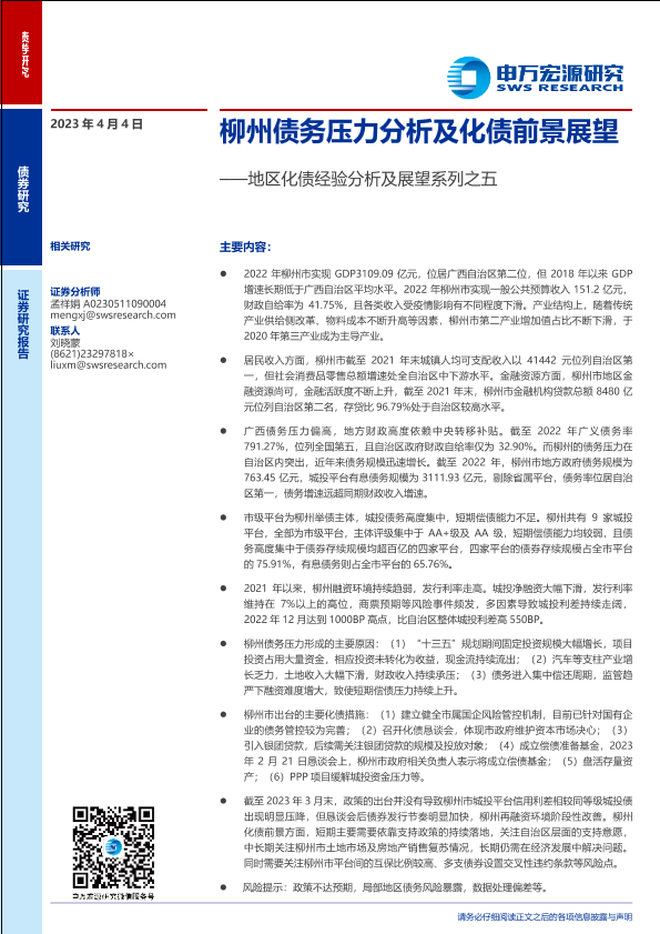 【申万宏源】【20230404】地区化债经验分析及展望系列之五:柳州债务压力分析及化债前景展望-21页