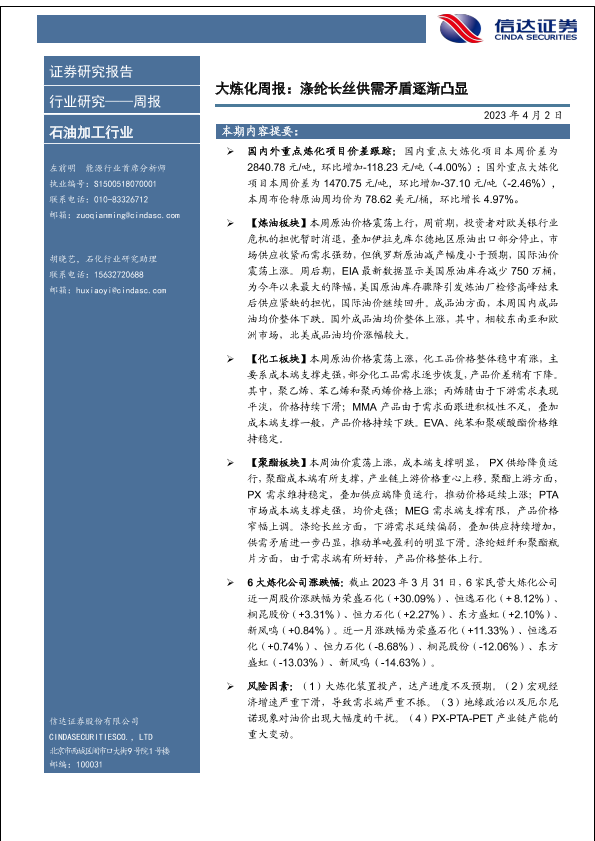 【信达证券】【20230402】大炼化周报:涤纶长丝供需矛盾逐渐凸显-19页