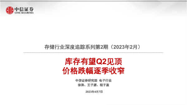 【中信证券】【20230407】存储行业深度追踪系列第2期(2023年2月):库存有望Q2见顶,价格跌幅逐季收窄-33页
