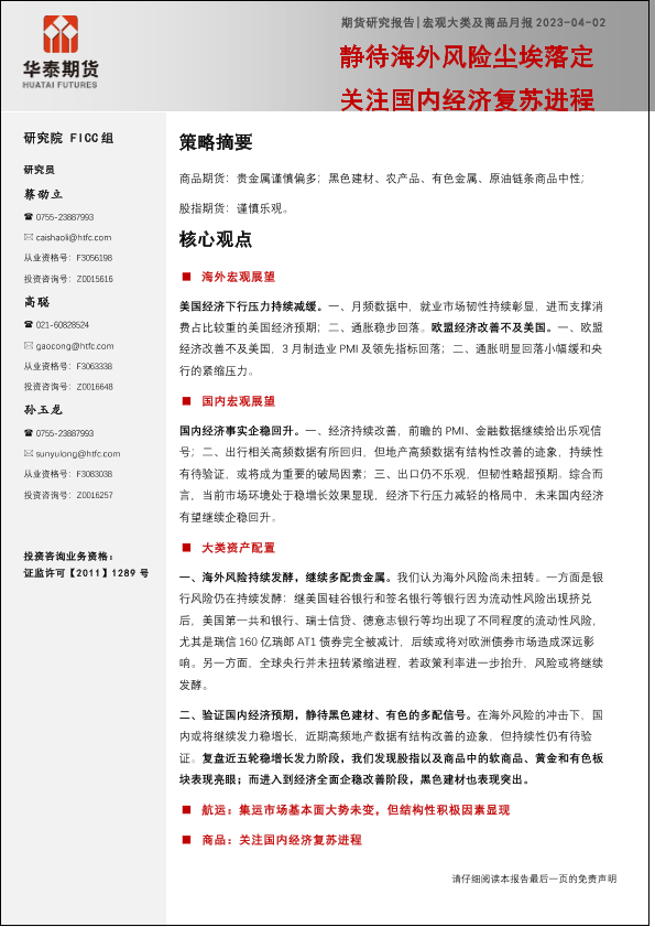 【华泰期货】【20230402】宏观大类及商品月报:静待海外风险尘埃落定,关注国内经济复苏进程-24页