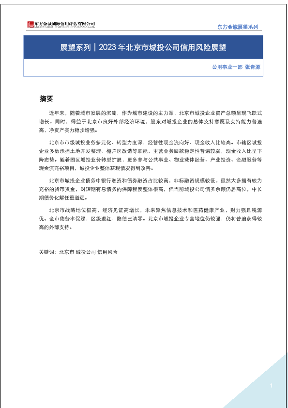 【东方金诚】【20230407】2023年北京市城投公司信用风险展望-26页