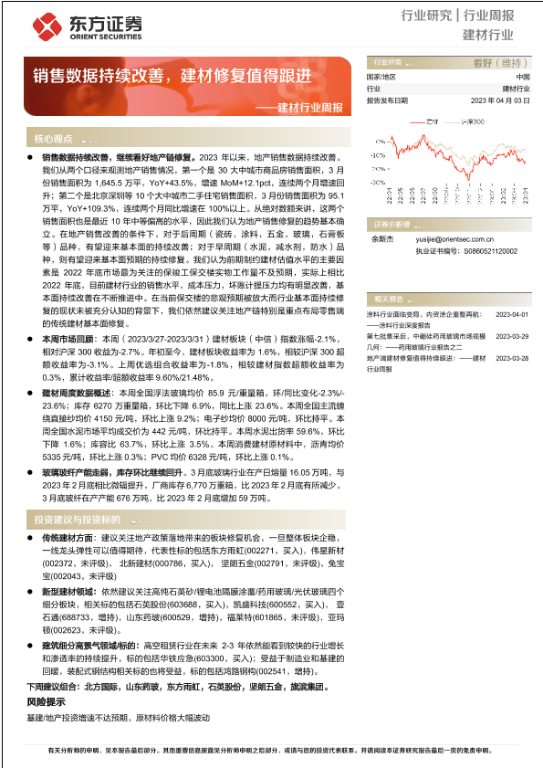 【东方证券】【20230403】建材行业周报:销售数据持续改善,建材修复值得跟进-20页