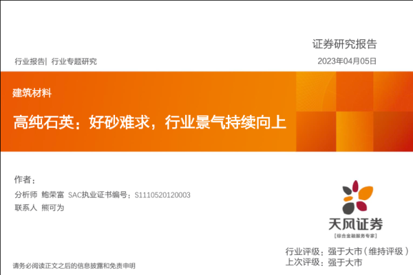 【天风证券】【20230405】建筑材料行业专题研究:高纯石英:好砂难求,行业景气持续向上-36页