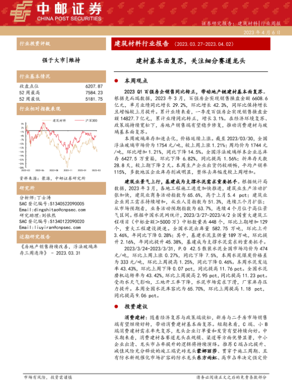 【中邮证券】【20230406】建筑材料行业报告:建材基本面复苏,关注细分赛道龙头-18页