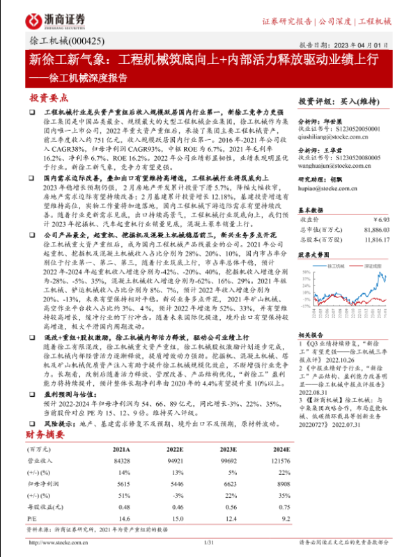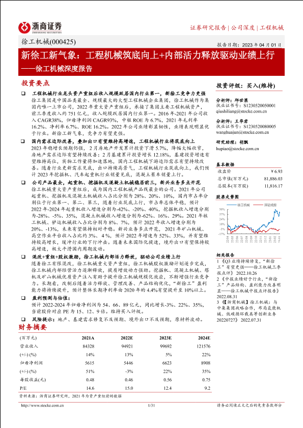 【浙商证券】【20230401】徐工机械深度报告(000425):新徐工新气象:工程机械筑底向上+内部活力释放驱动业绩上行-31页